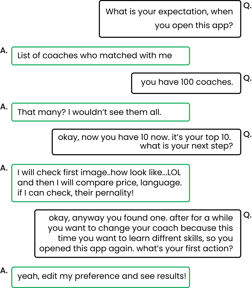 "I found a yoga coach 4 months ago via this Coach finder app and have developed the running and yoga skills. Now I want to learn other yoga skills from a new coach who can coach me not only yoga but also meditation.